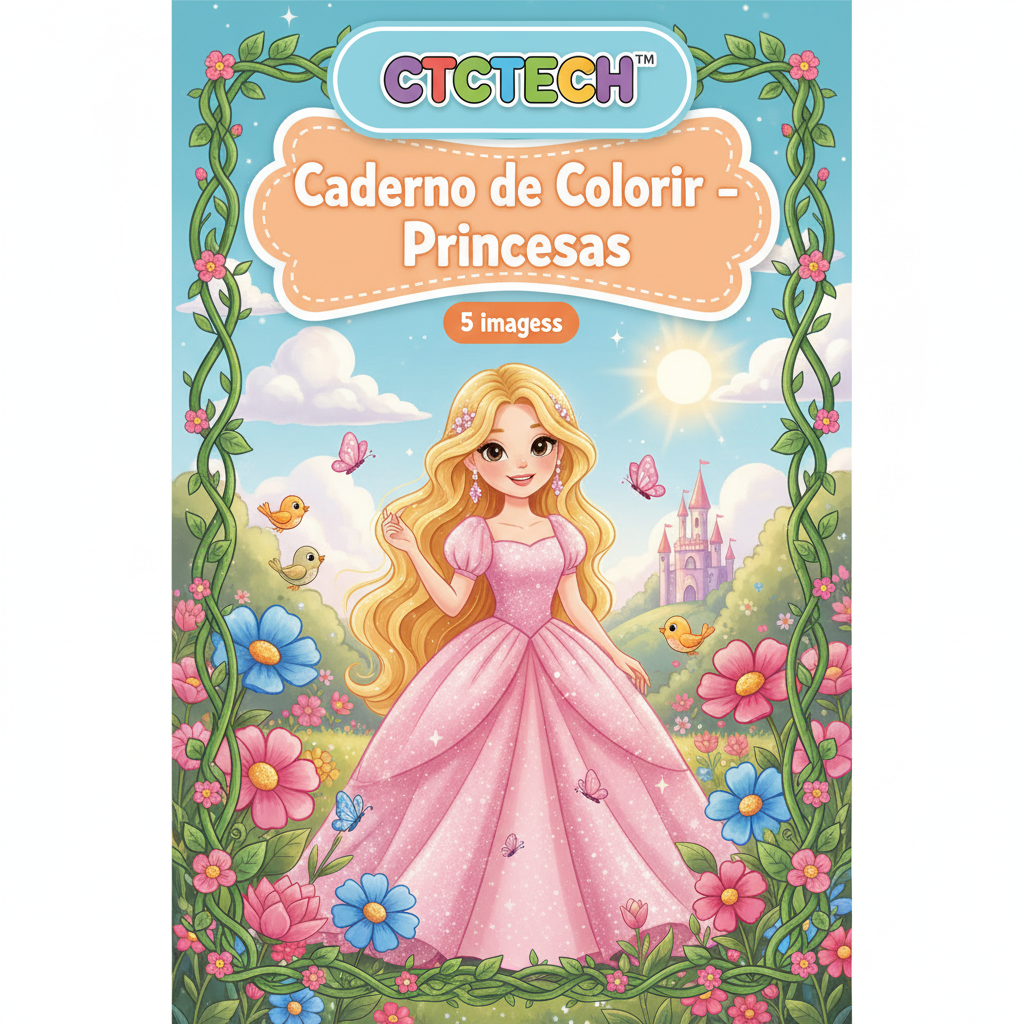 / CTCTECH™ Caderno de Colorir – Princesas – 5 imagens